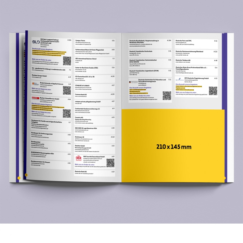 Bewerben Sie Ihre Messeteilnahmen im begleitenden Messekatalog. Dieser enthält das Ausstellerverzeichnis inkl. Aussteller-Inseraten (mit QR-Codes), das Programm und den Hallenplan. Er ist eine wichtige Orientierungshilfe während der gesamten Veranstaltung sowie danach und wird kostenfrei auf jeder Messe ausgelegt.