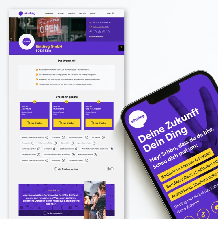 Gezielte Nutzerführung: einstieg.com ist darauf optimiert, intrinsisch motivierte SchülerInnen zu Ihren Angeboten zu lenken, beispielsweise über den Interessencheck, die Suche oder per Verlinkung in unseren hochqualitativen redaktionellen Texten.